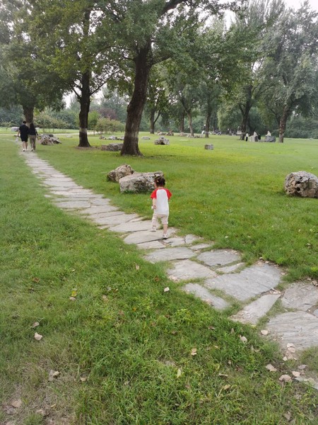 今天早上7点起床去参加园区的跑步比赛。中午老婆和孩子打车到西二旗,然后一起去招商银行给孩子办了银行卡。办完抱着孩子去公司,没走多远就睡着了。孩子到公司之后醒了,在公司看了会电视玩了一会,去楼下西部马华吃饭,闲聊知道今天圆明园免费。然后下午就去圆明园玩了一圈,一天走了27000步,累断腿。晚上打车回来,妈妈做了蛋蛋饭(面水鸡蛋)。